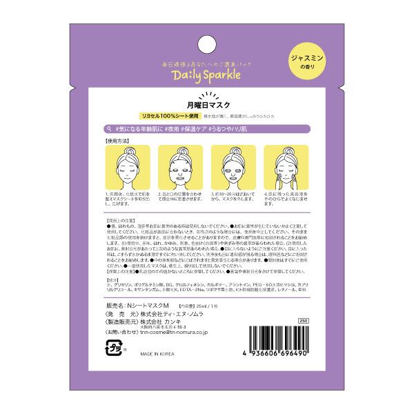 1. 洗顔後、化粧水で肌を整えマスクシートを取り出し、広げます。